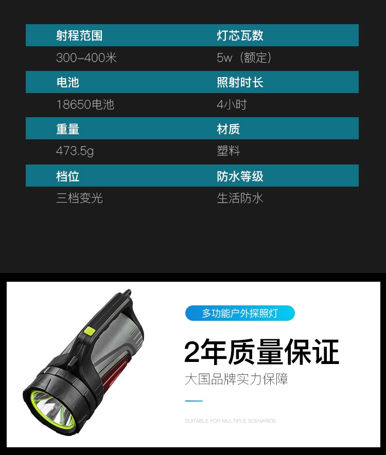 商品を受け取って試してみましたが、明るさが足りません。一時間以上充電して再試験します。明るさもいいし、射程も遠いです。懐中電灯は軽くて、携帯しています。受け取った懐中電灯の充電口の保護カバーは壊れています。我慢して使ってください。