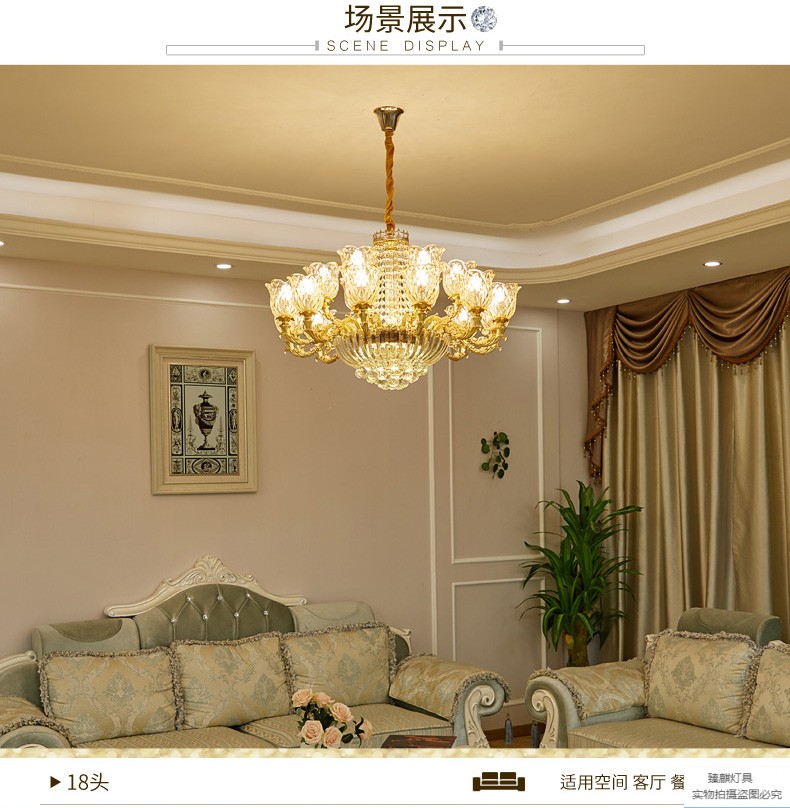 西洋式水晶吊灯客間灯現代簡約レストラン灯寝室灯简欧水晶灯復古灯器具10頭の黄色光、12ワットのLED電球を送ります。