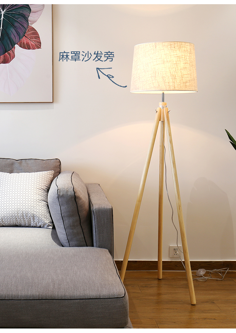 LEDダウンライトは簡単に現代のリビングルームのベットヘッド北欧の木製スタンドのインテリジェントリモコンスタンド式のライトダウンライト麻色の自分で電球を買うことができます。