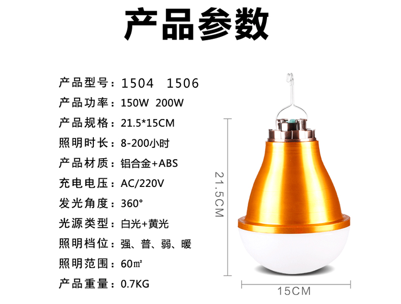 キャプションテントランプLED夜市の屋台で充電可能な電球が超明るい黄光緊急照明スタンド屋外3リチウムイオン1504 W(白光黄光両用)+8800